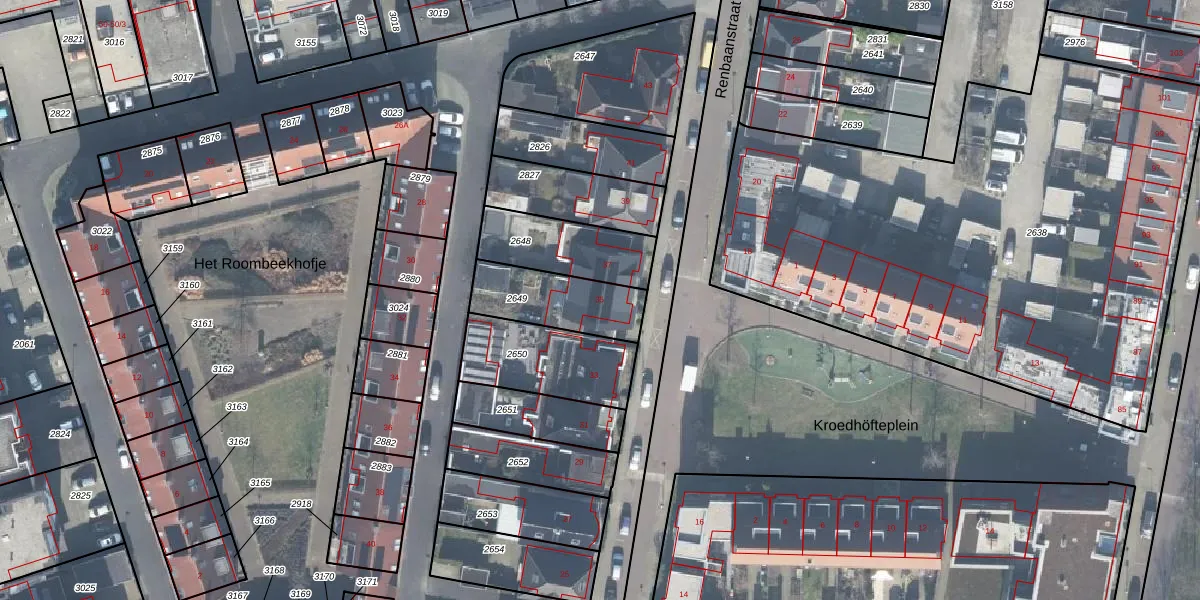 Gebruik de zoekbalk of klik op een perceel voor informatie over de adressen binnen dit perceel.