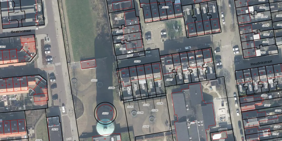Gebruik de zoekbalk of klik op een perceel voor informatie over de adressen binnen dit perceel.