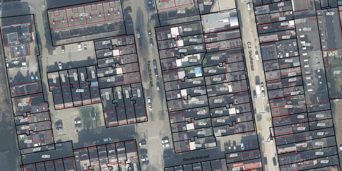 Het perceel waarop Reudinkstraat 46 staat heeft een oppervlakte van 130 m². Dit is een middelgroot perceel. De perceeloppervlakte wordt geregistreerd door het Kadaster. Gedetailleerde informatie over de maten van dit perceel kunt u vinden in het rapport Kadastrale kaart met maatvoering van Reudinkstraat 46.