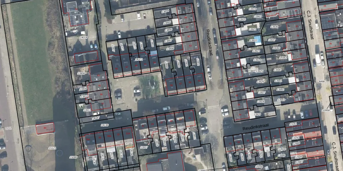 Het perceel waarop Reudinkstraat 55 staat heeft een oppervlakte van 171 m². Dit is een middelgroot perceel. De perceeloppervlakte wordt geregistreerd door het Kadaster. Gedetailleerde informatie over de maten van dit perceel kunt u vinden in het rapport Kadastrale kaart met maatvoering van Reudinkstraat 55.