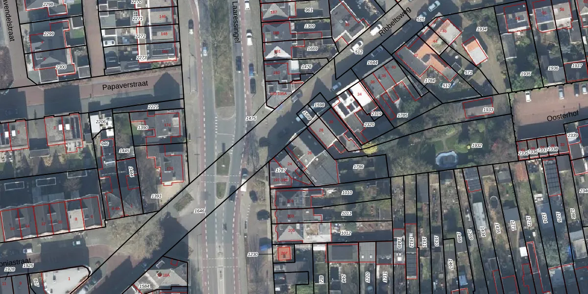 Het perceel waarop Ribbeltsweg 26-B staat heeft een oppervlakte van 340 m². Dit is een groot perceel. De perceeloppervlakte wordt geregistreerd door het Kadaster. Gedetailleerde informatie over de maten van dit perceel kunt u vinden in het rapport Kadastrale kaart met maatvoering van Ribbeltsweg 26-B.