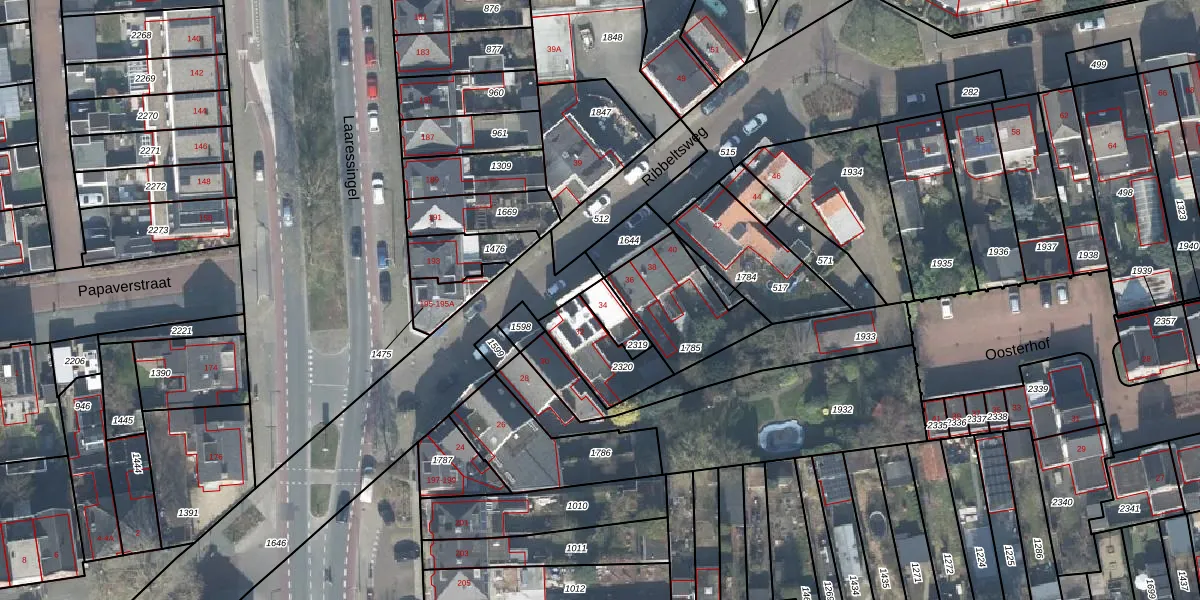 Het perceel waarop Ribbeltsweg 34 staat heeft een oppervlakte van 66 m². Dit is een klein perceel. De perceeloppervlakte wordt geregistreerd door het Kadaster. Gedetailleerde informatie over de maten van dit perceel kunt u vinden in het rapport Kadastrale kaart met maatvoering van Ribbeltsweg 34.