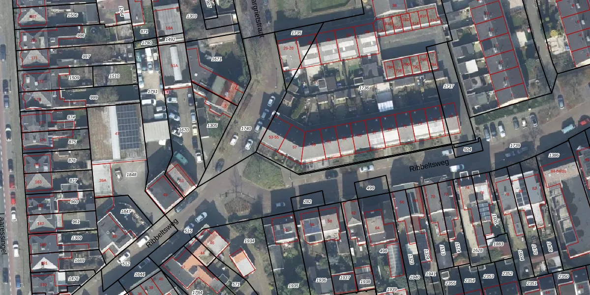 Het perceel waarop Ribbeltsweg 57 staat heeft een oppervlakte van 3320 m². Dit is een zeer groot perceel. De perceeloppervlakte wordt geregistreerd door het Kadaster. Gedetailleerde informatie over de maten van dit perceel kunt u vinden in het rapport Kadastrale kaart met maatvoering van Ribbeltsweg 57.