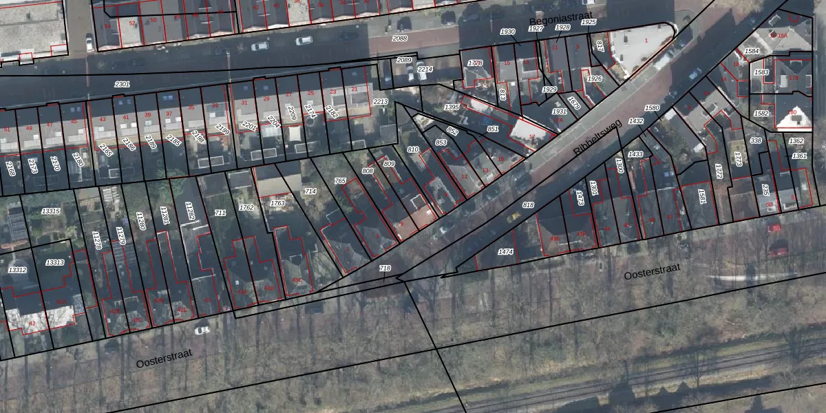 Gebruik de zoekbalk of klik op een perceel voor informatie over de adressen binnen dit perceel.