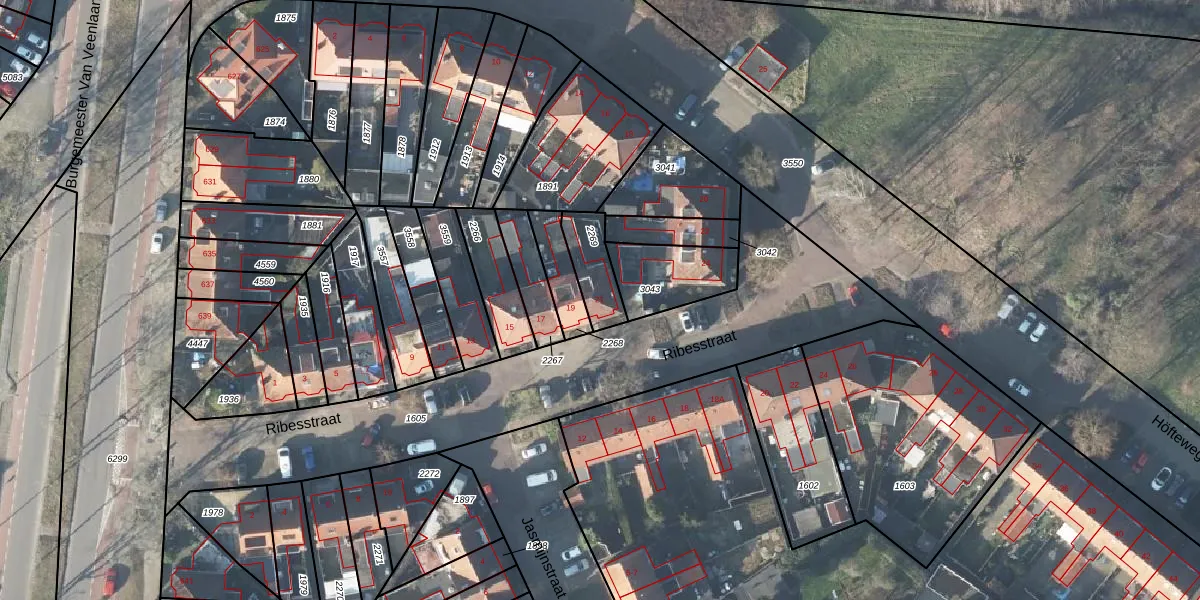 Het perceel waarop Ribesstraat 21 staat heeft een oppervlakte van 123 m². Dit is een middelgroot perceel. De perceeloppervlakte wordt geregistreerd door het Kadaster. Gedetailleerde informatie over de maten van dit perceel kunt u vinden in het rapport Kadastrale kaart met maatvoering van Ribesstraat 21.