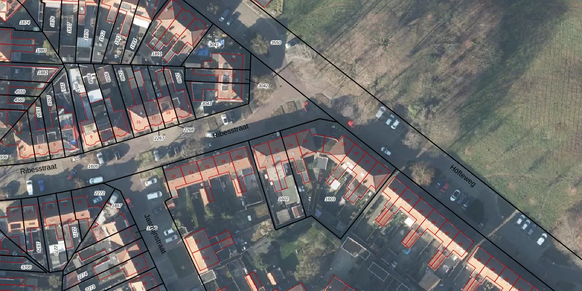 Het perceel waarop Ribesstraat 24 staat heeft een oppervlakte van 968 m². Dit is een groot perceel. De perceeloppervlakte wordt geregistreerd door het Kadaster. Gedetailleerde informatie over de maten van dit perceel kunt u vinden in het rapport Kadastrale kaart met maatvoering van Ribesstraat 24.