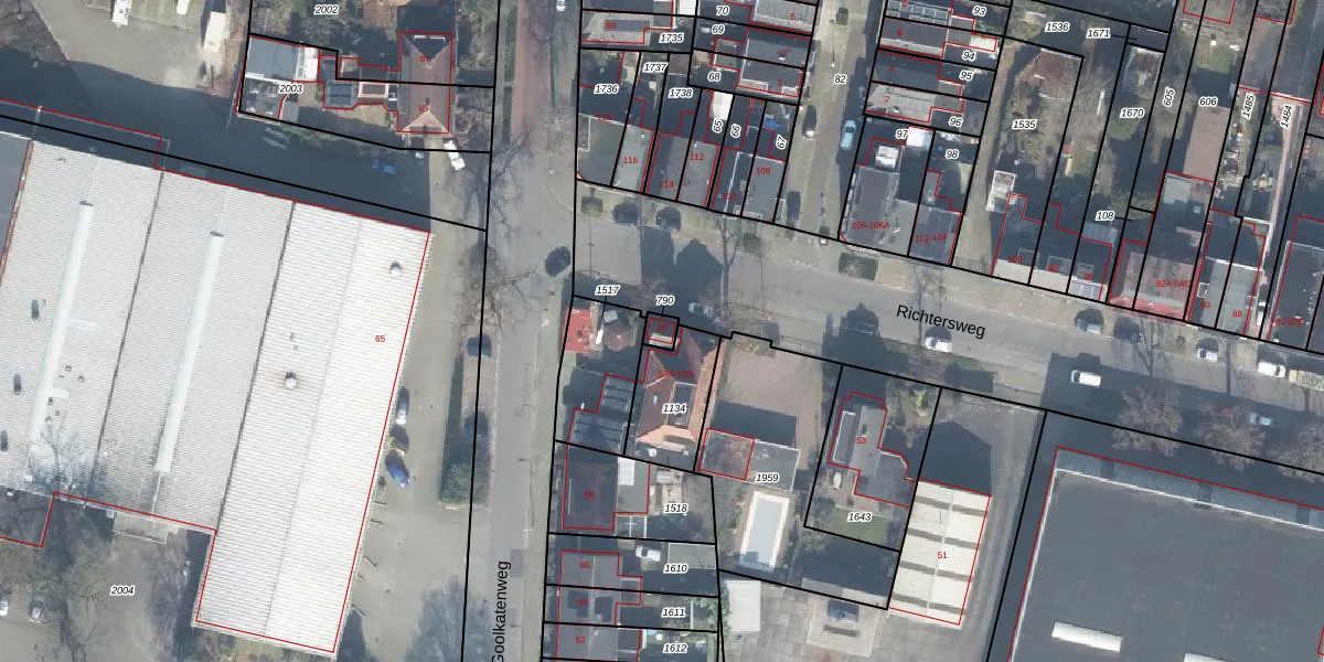 Gebruik de zoekbalk of klik op een perceel voor informatie over de adressen binnen dit perceel.