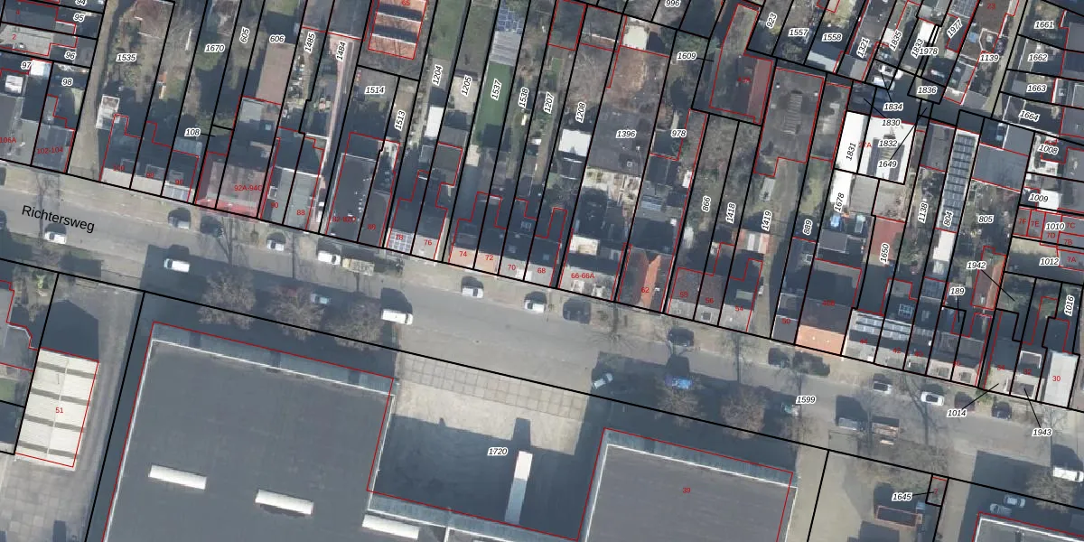 Richtersweg 68 is gelegen op kadastraal perceel ESD00I1208. Deze kadastrale aanduiding is uniek en wordt gebruikt door het Kadaster om eigendomsrechten en andere zakelijke rechten vast te leggen. Het perceel maakt onderdeel uit van de kadastrale gemeente Enschede.