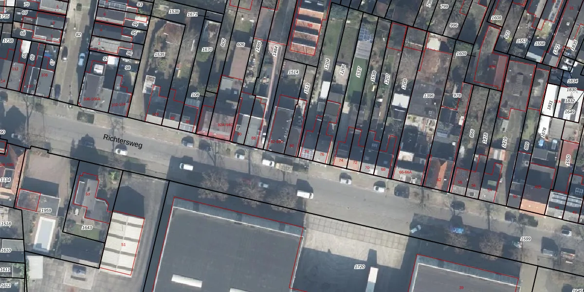 Richtersweg 80 is gelegen op kadastraal perceel ESD00I1513. Deze kadastrale aanduiding is uniek en wordt gebruikt door het Kadaster om eigendomsrechten en andere zakelijke rechten vast te leggen. Het perceel maakt onderdeel uit van de kadastrale gemeente Enschede.