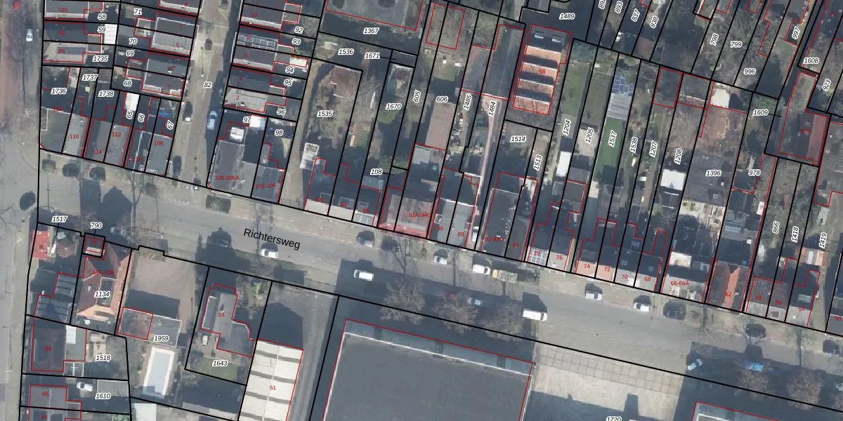 Het perceel waarop Richtersweg 92-D staat heeft een oppervlakte van 428 m². Dit is een groot perceel. De perceeloppervlakte wordt geregistreerd door het Kadaster. Gedetailleerde informatie over de maten van dit perceel kunt u vinden in het rapport Kadastrale kaart met maatvoering van Richtersweg 92-D.