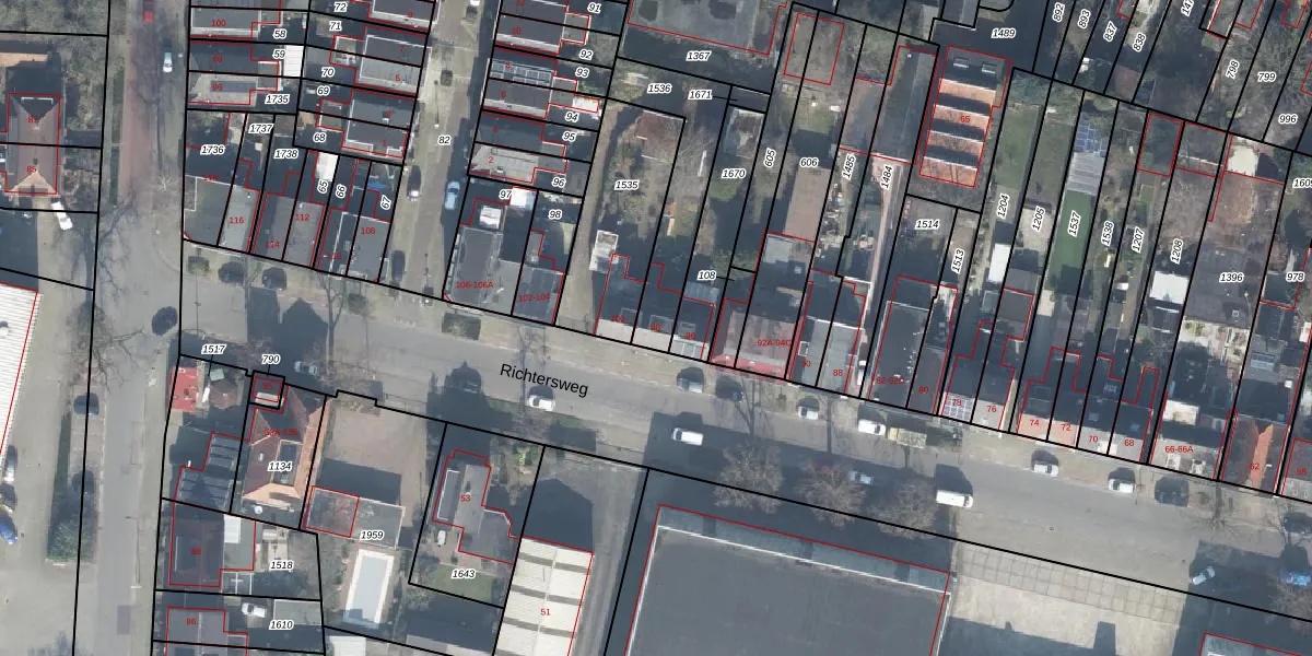Gebruik de zoekbalk of klik op een perceel voor informatie over de adressen binnen dit perceel.
