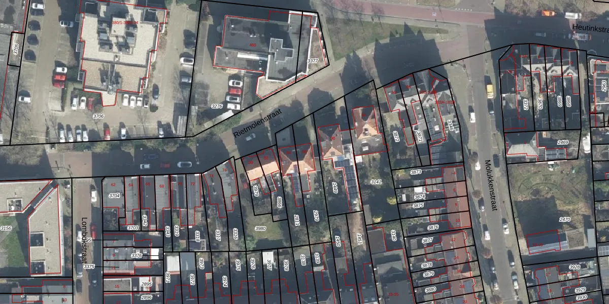 Gebruik de zoekbalk of klik op een perceel voor informatie over de adressen binnen dit perceel.