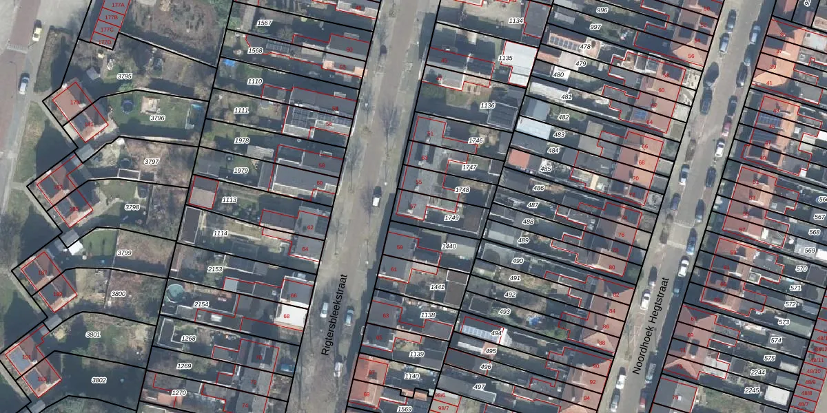Gebruik de zoekbalk of klik op een perceel voor informatie over de adressen binnen dit perceel.