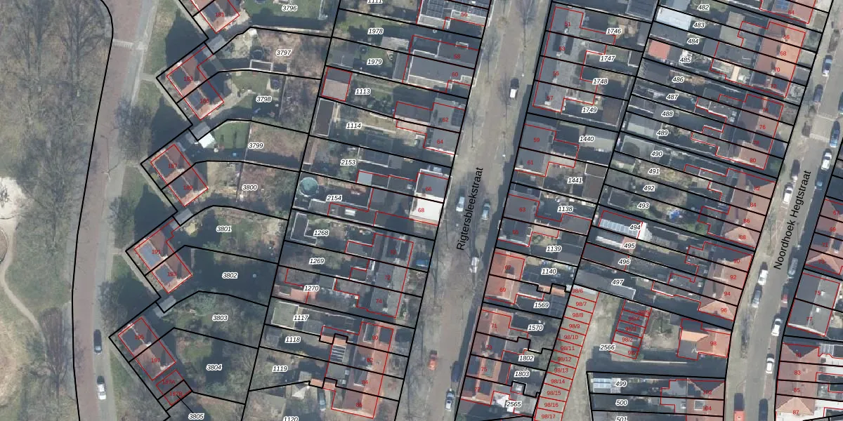 Het perceel waarop Rigtersbleekstraat 68 staat heeft een oppervlakte van 322 m². Dit is een groot perceel. De perceeloppervlakte wordt geregistreerd door het Kadaster. Gedetailleerde informatie over de maten van dit perceel kunt u vinden in het rapport Kadastrale kaart met maatvoering van Rigtersbleekstraat 68.