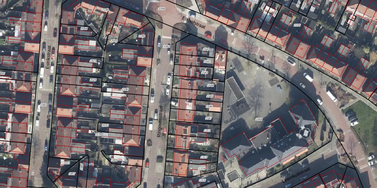 Gebruik de zoekbalk of klik op een perceel voor informatie over de adressen binnen dit perceel.
