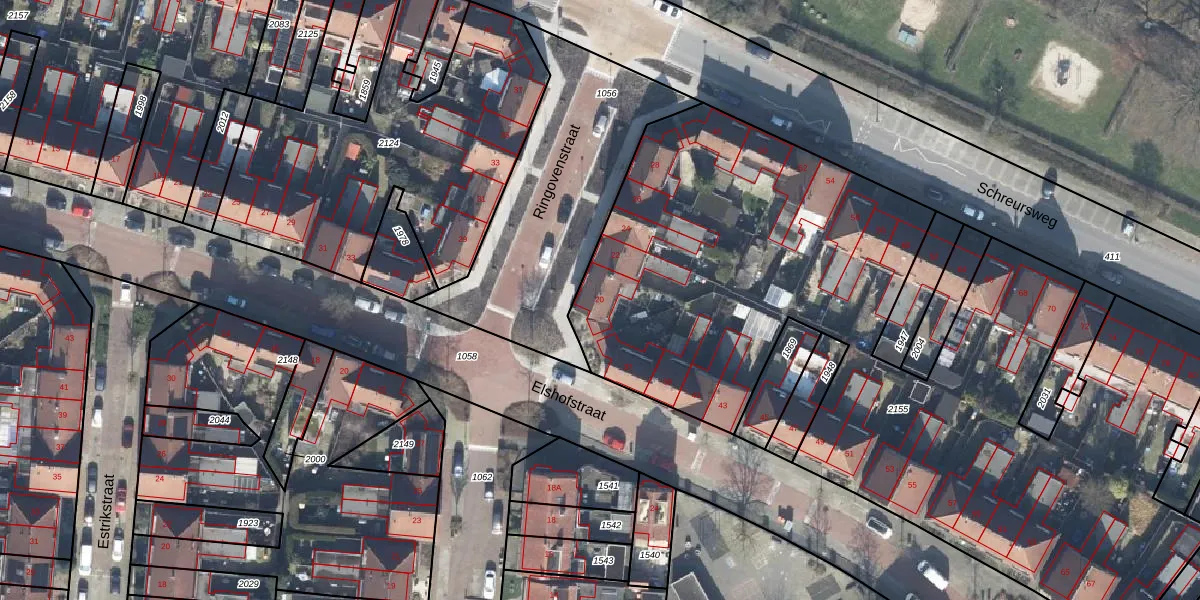 Het perceel waarop Ringovenstraat 20 staat heeft een oppervlakte van 4495 m². Dit is een zeer groot perceel. De perceeloppervlakte wordt geregistreerd door het Kadaster. Gedetailleerde informatie over de maten van dit perceel kunt u vinden in het rapport Kadastrale kaart met maatvoering van Ringovenstraat 20.