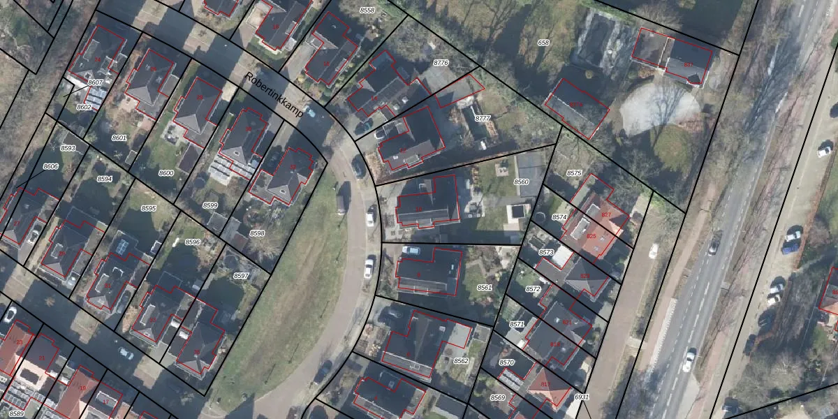 Het perceel waarop Robertinkkamp 10 staat heeft een oppervlakte van 701 m². Dit is een groot perceel. De perceeloppervlakte wordt geregistreerd door het Kadaster. Gedetailleerde informatie over de maten van dit perceel kunt u vinden in het rapport Kadastrale kaart met maatvoering van Robertinkkamp 10.