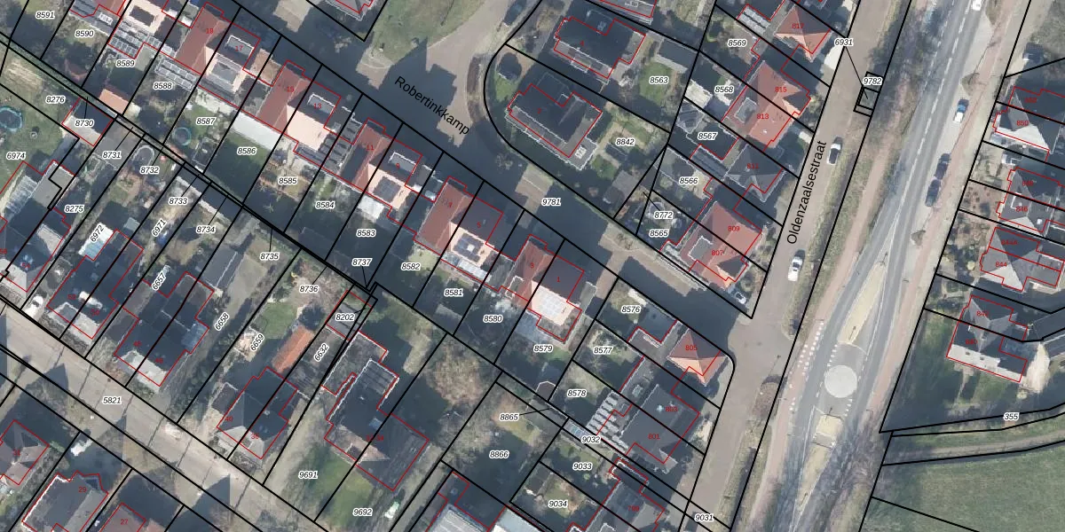 Gebruik de zoekbalk of klik op een perceel voor informatie over de adressen binnen dit perceel.