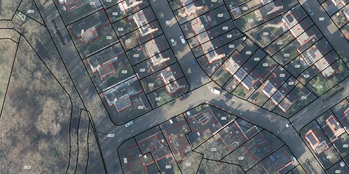 Het perceel waarop Robijnstraat 1 staat heeft een oppervlakte van 235 m². Dit is een middelgroot perceel. De perceeloppervlakte wordt geregistreerd door het Kadaster. Gedetailleerde informatie over de maten van dit perceel kunt u vinden in het rapport Kadastrale kaart met maatvoering van Robijnstraat 1.
