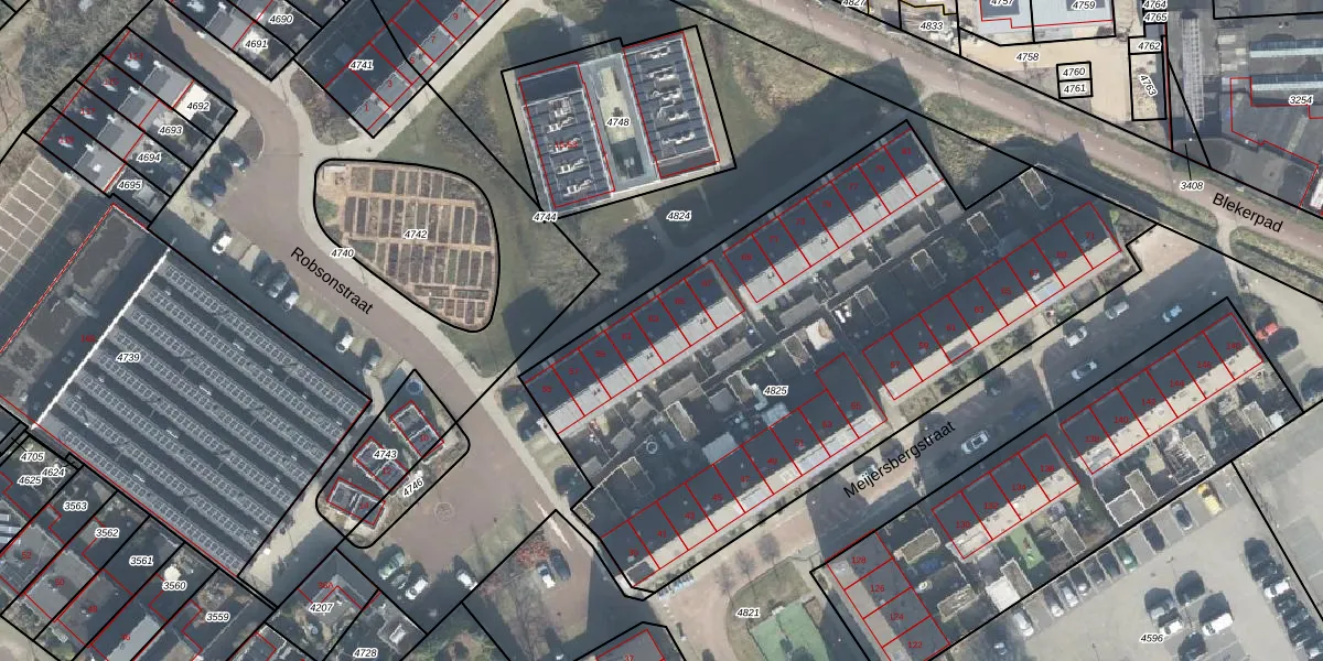 Het perceel waarop Robsonstraat 63 staat heeft een oppervlakte van 3166 m². Dit is een zeer groot perceel. De perceeloppervlakte wordt geregistreerd door het Kadaster. Gedetailleerde informatie over de maten van dit perceel kunt u vinden in het rapport Kadastrale kaart met maatvoering van Robsonstraat 63.