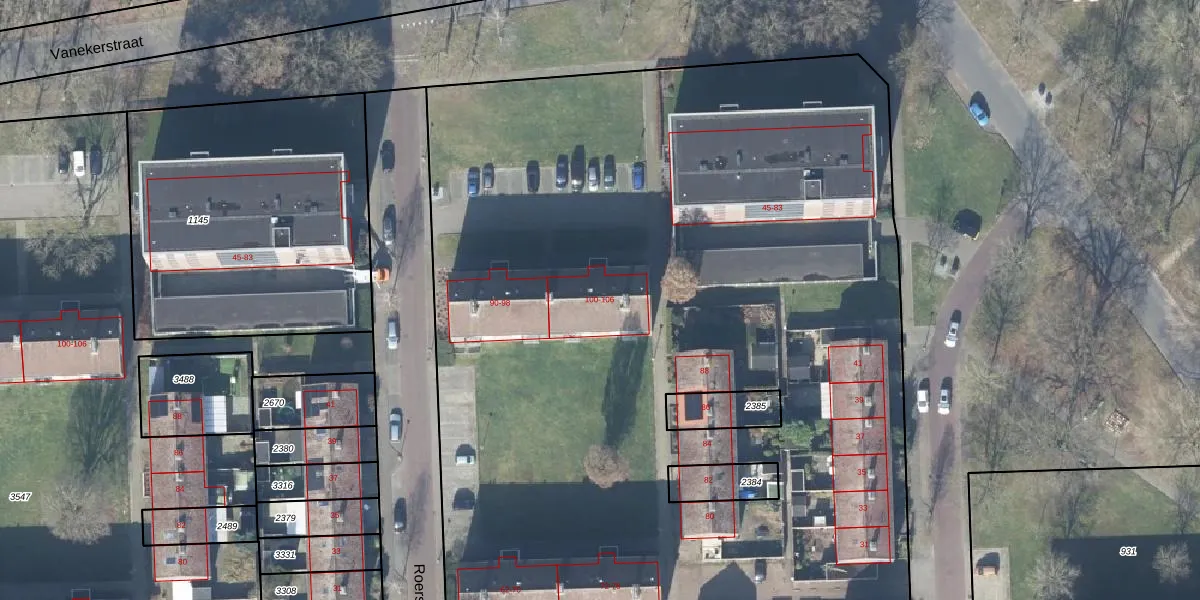 Het perceel waarop Roerstraat 100 staat heeft een oppervlakte van 1,4 ha. Dit is een zeer groot perceel. De perceeloppervlakte wordt geregistreerd door het Kadaster. Gedetailleerde informatie over de maten van dit perceel kunt u vinden in het rapport Kadastrale kaart met maatvoering van Roerstraat 100.