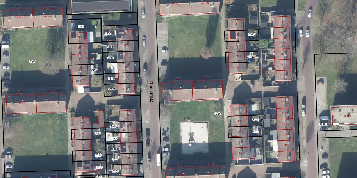 Het perceel waarop Roerstraat 62 staat heeft een oppervlakte van 1,4 ha. Dit is een zeer groot perceel. De perceeloppervlakte wordt geregistreerd door het Kadaster. Gedetailleerde informatie over de maten van dit perceel kunt u vinden in het rapport Kadastrale kaart met maatvoering van Roerstraat 62.