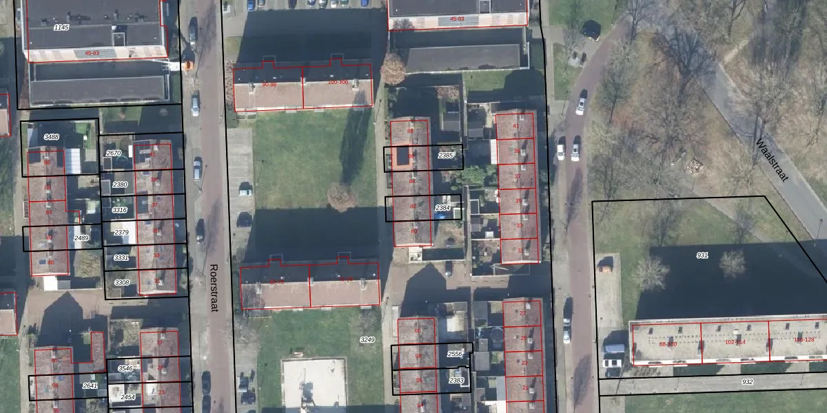 Het perceel waarop Roerstraat 82 staat heeft een oppervlakte van 110 m². Dit is een middelgroot perceel. De perceeloppervlakte wordt geregistreerd door het Kadaster. Gedetailleerde informatie over de maten van dit perceel kunt u vinden in het rapport Kadastrale kaart met maatvoering van Roerstraat 82.