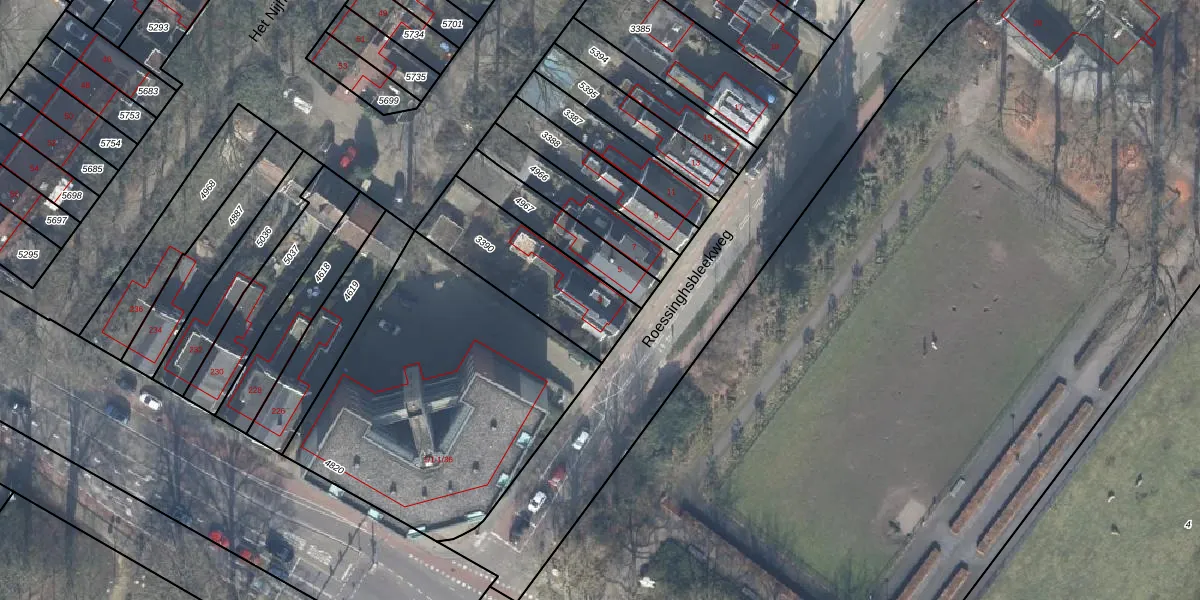 Het perceel waarop Roessinghsbleekweg 3 staat heeft een oppervlakte van 427 m². Dit is een groot perceel. De perceeloppervlakte wordt geregistreerd door het Kadaster. Gedetailleerde informatie over de maten van dit perceel kunt u vinden in het rapport Kadastrale kaart met maatvoering van Roessinghsbleekweg 3.
