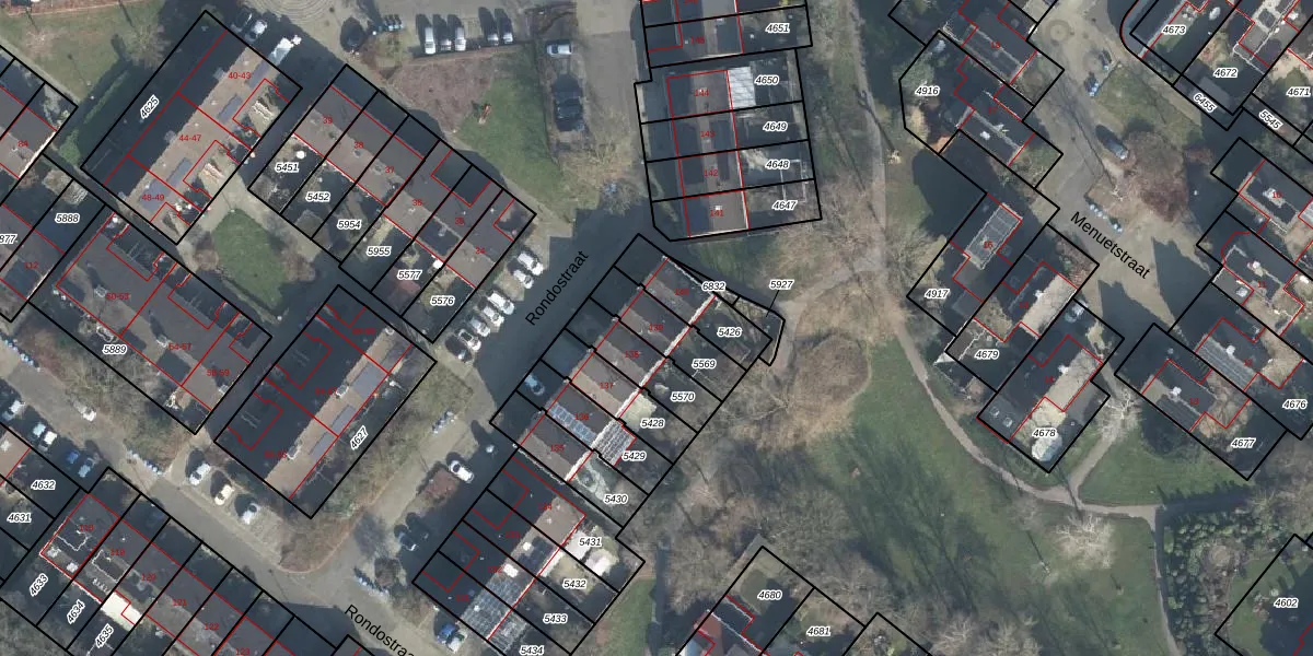 Gebruik de zoekbalk of klik op een perceel voor informatie over de adressen binnen dit perceel.