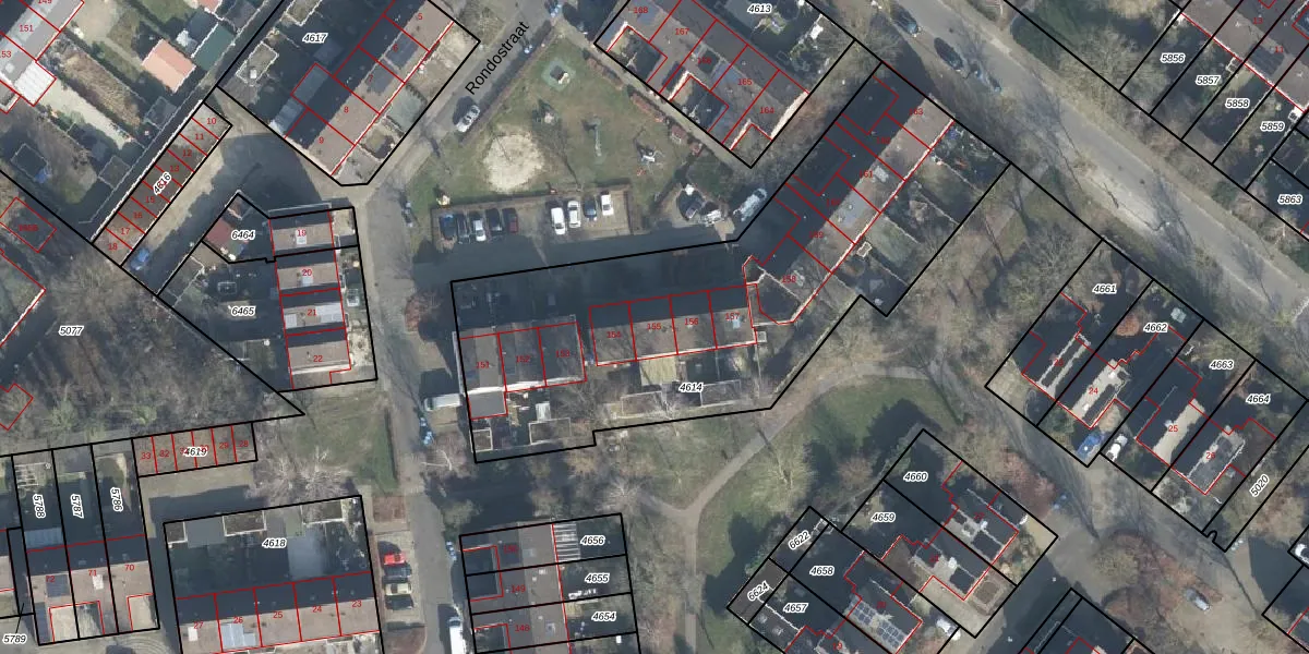 Het perceel waarop Rondostraat 155 staat heeft een oppervlakte van 2217 m². Dit is een zeer groot perceel. De perceeloppervlakte wordt geregistreerd door het Kadaster. Gedetailleerde informatie over de maten van dit perceel kunt u vinden in het rapport Kadastrale kaart met maatvoering van Rondostraat 155.
