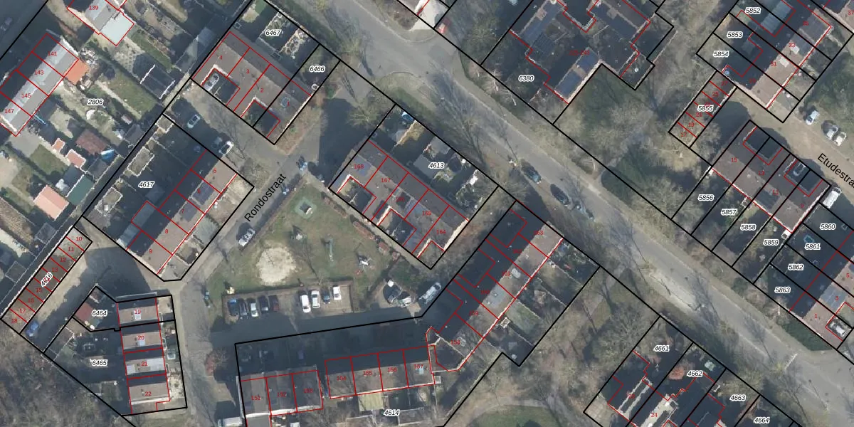 Het perceel waarop Rondostraat 165 staat heeft een oppervlakte van 772 m². Dit is een groot perceel. De perceeloppervlakte wordt geregistreerd door het Kadaster. Gedetailleerde informatie over de maten van dit perceel kunt u vinden in het rapport Kadastrale kaart met maatvoering van Rondostraat 165.
