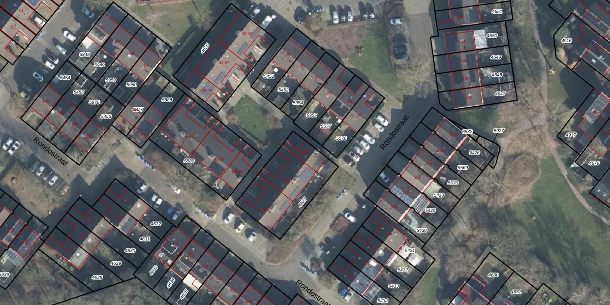 Het perceel waarop Rondostraat 68 staat heeft een oppervlakte van 580 m². Dit is een groot perceel. De perceeloppervlakte wordt geregistreerd door het Kadaster. Gedetailleerde informatie over de maten van dit perceel kunt u vinden in het rapport Kadastrale kaart met maatvoering van Rondostraat 68.