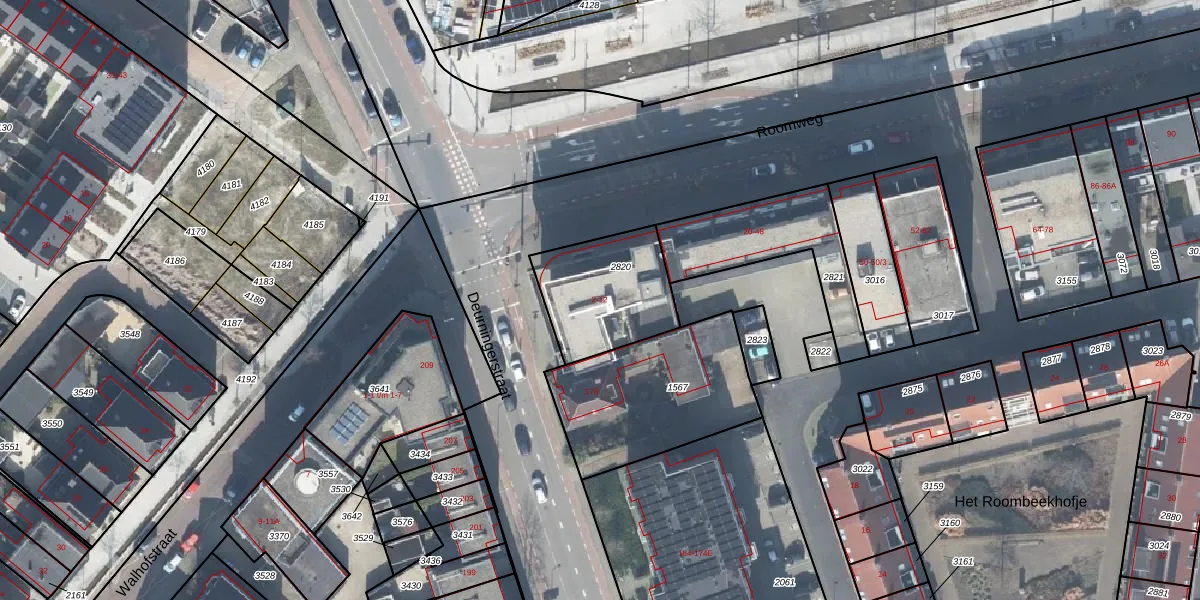 Het perceel waarop Roomweg 12 staat heeft een oppervlakte van 387 m². Dit is een groot perceel. De perceeloppervlakte wordt geregistreerd door het Kadaster. Gedetailleerde informatie over de maten van dit perceel kunt u vinden in het rapport Kadastrale kaart met maatvoering van Roomweg 12.