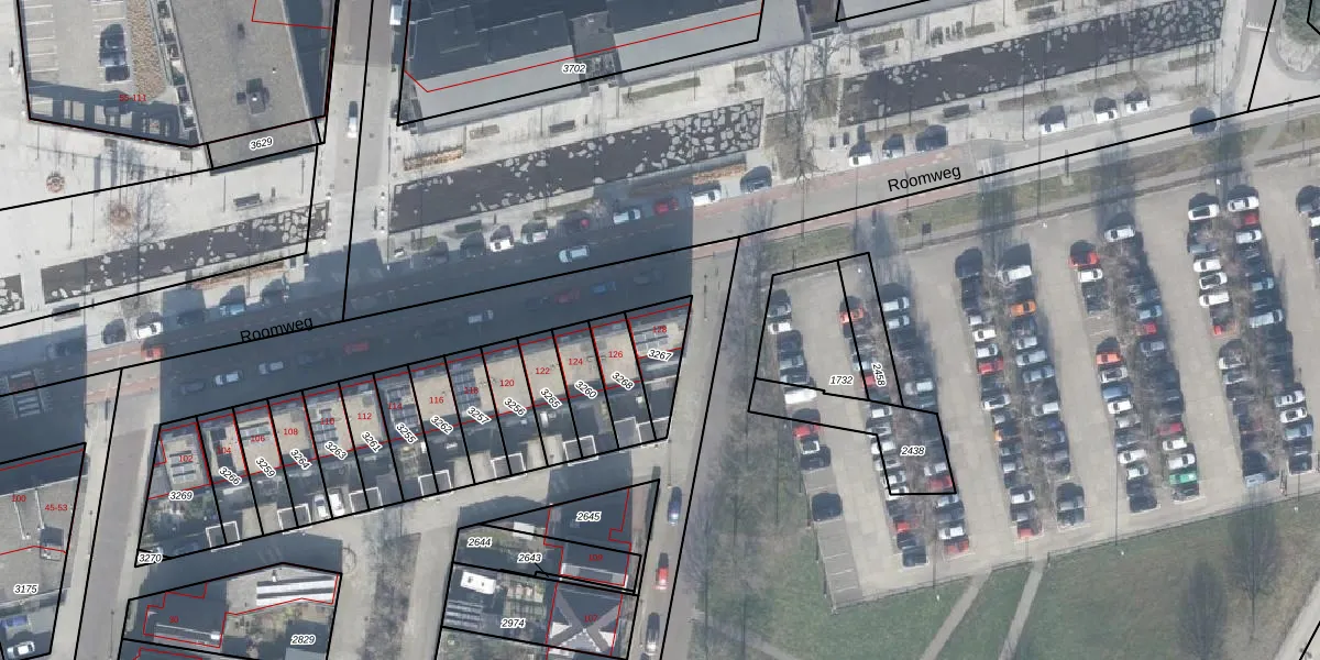 Gebruik de zoekbalk of klik op een perceel voor informatie over de adressen binnen dit perceel.
