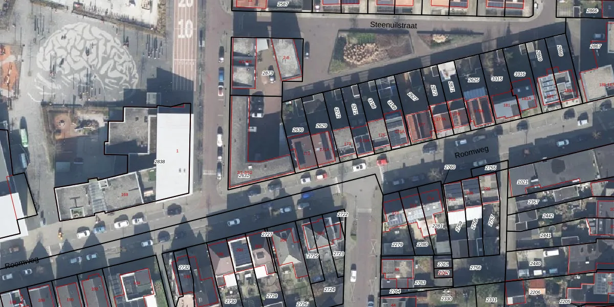 Het perceel waarop Roomweg 171 staat heeft een oppervlakte van 179 m². Dit is een middelgroot perceel. De perceeloppervlakte wordt geregistreerd door het Kadaster. Gedetailleerde informatie over de maten van dit perceel kunt u vinden in het rapport Kadastrale kaart met maatvoering van Roomweg 171.
