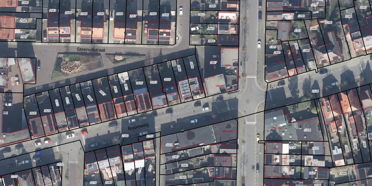 Gebruik de zoekbalk of klik op een perceel voor informatie over de adressen binnen dit perceel.