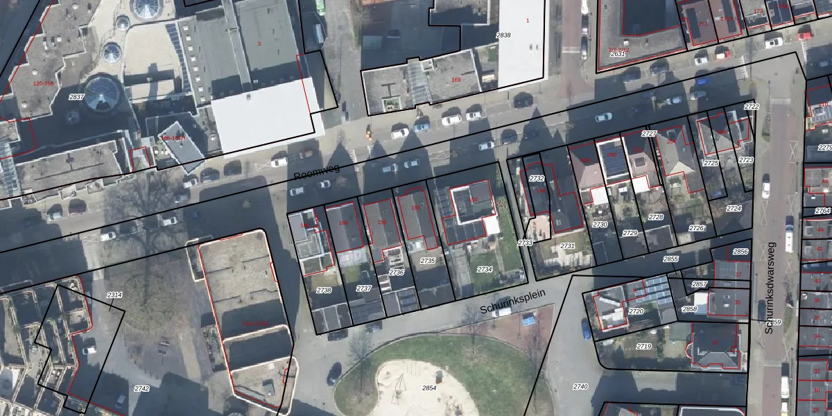 Gebruik de zoekbalk of klik op een perceel voor informatie over de adressen binnen dit perceel.
