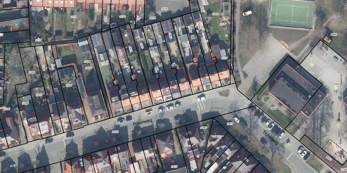 Gebruik de zoekbalk of klik op een perceel voor informatie over de adressen binnen dit perceel.