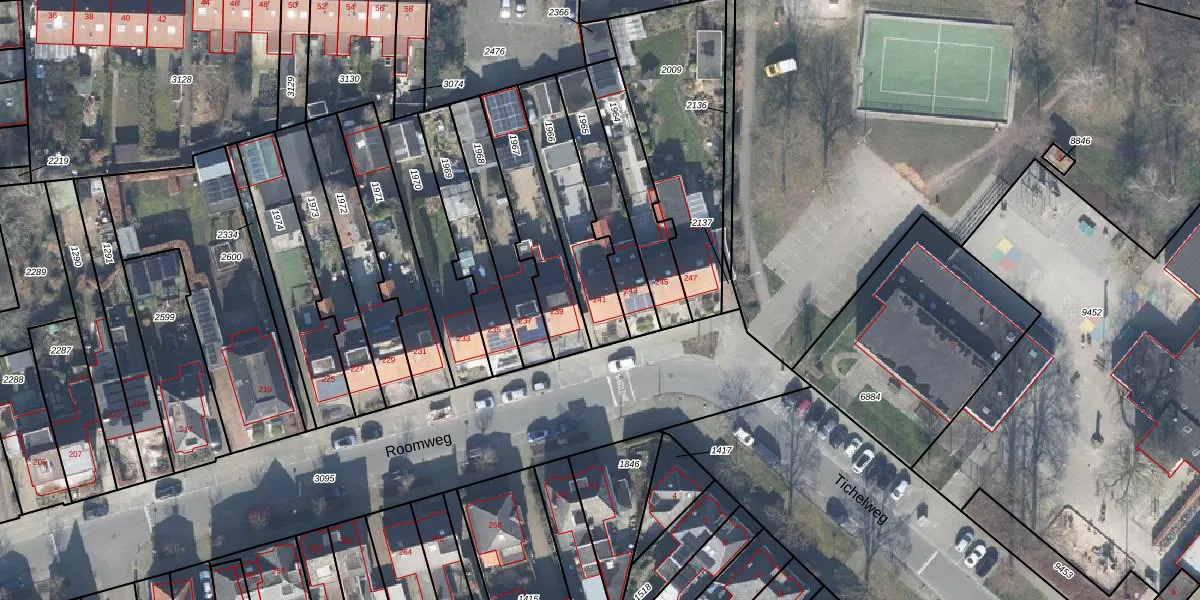 Het perceel waarop Roomweg 241 staat heeft een oppervlakte van 297 m². Dit is een middelgroot perceel. De perceeloppervlakte wordt geregistreerd door het Kadaster. Gedetailleerde informatie over de maten van dit perceel kunt u vinden in het rapport Kadastrale kaart met maatvoering van Roomweg 241.