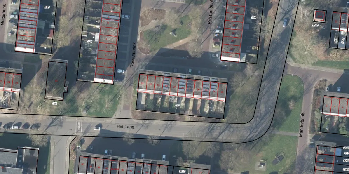 Het perceel waarop Rossumbrink 29 staat heeft een oppervlakte van 1062 m². Dit is een zeer groot perceel. De perceeloppervlakte wordt geregistreerd door het Kadaster. Gedetailleerde informatie over de maten van dit perceel kunt u vinden in het rapport Kadastrale kaart met maatvoering van Rossumbrink 29.