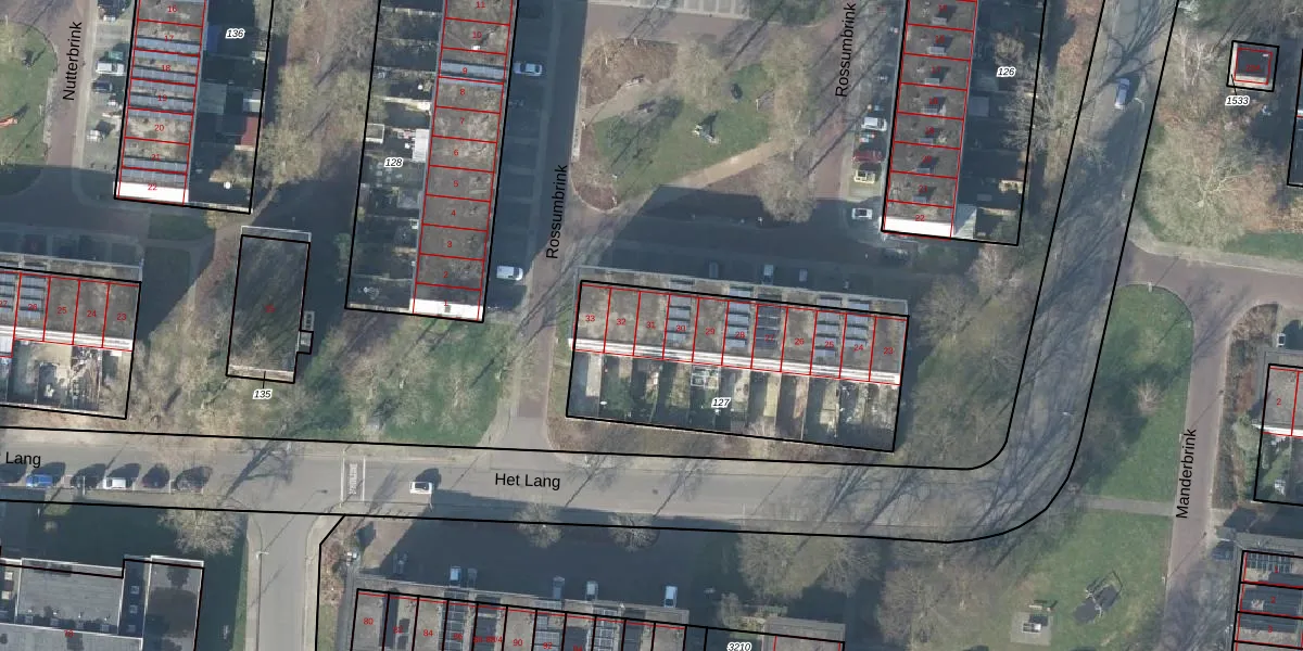Het perceel waarop Rossumbrink 31 staat heeft een oppervlakte van 1062 m². Dit is een zeer groot perceel. De perceeloppervlakte wordt geregistreerd door het Kadaster. Gedetailleerde informatie over de maten van dit perceel kunt u vinden in het rapport Kadastrale kaart met maatvoering van Rossumbrink 31.