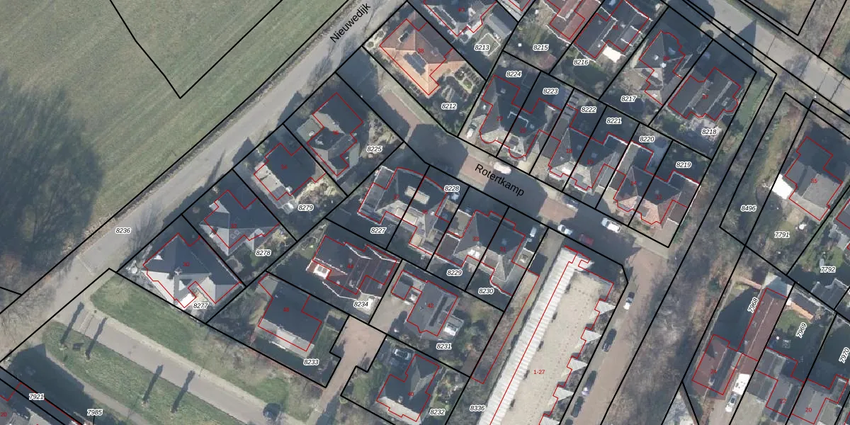 Rotertkamp 35 is gelegen op kadastraal perceel LNK00C8228. Deze kadastrale aanduiding is uniek en wordt gebruikt door het Kadaster om eigendomsrechten en andere zakelijke rechten vast te leggen. Het perceel maakt onderdeel uit van de kadastrale gemeente Lonneker.
