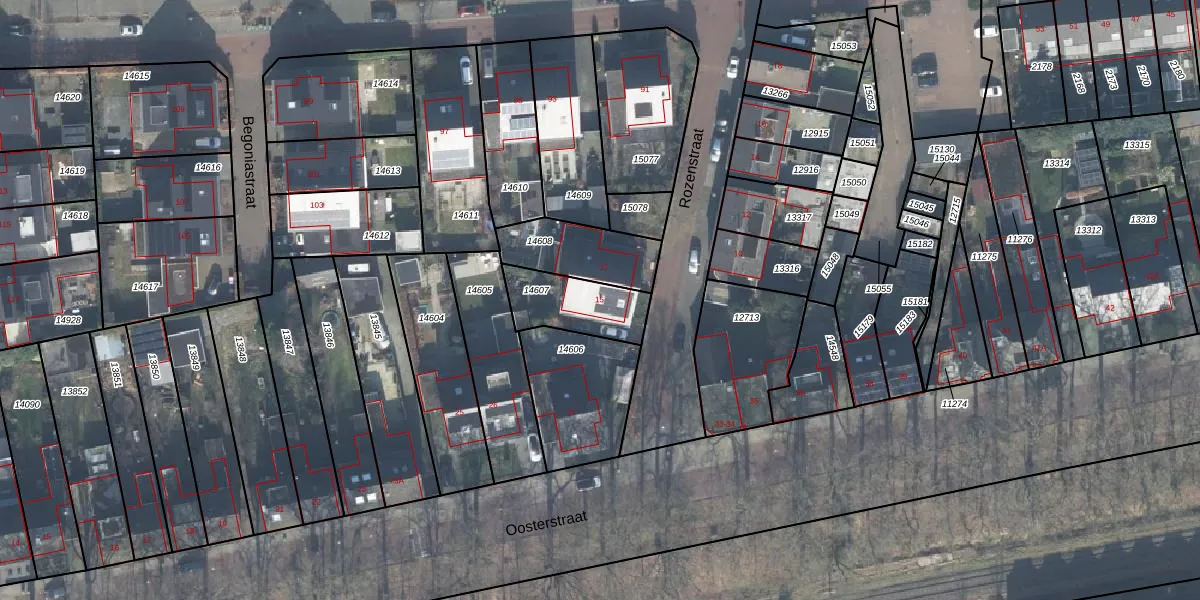 Het perceel waarop Rozenstraat 15 staat heeft een oppervlakte van 213 m². Dit is een middelgroot perceel. De perceeloppervlakte wordt geregistreerd door het Kadaster. Gedetailleerde informatie over de maten van dit perceel kunt u vinden in het rapport Kadastrale kaart met maatvoering van Rozenstraat 15.