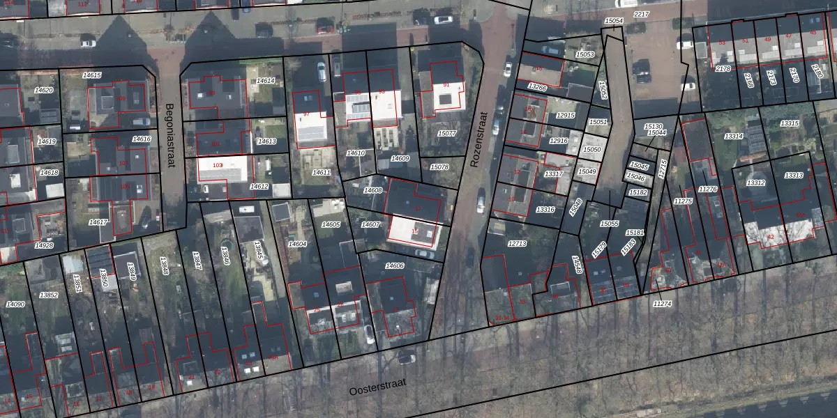 Het perceel waarop Rozenstraat 17 staat heeft een oppervlakte van 228 m². Dit is een middelgroot perceel. De perceeloppervlakte wordt geregistreerd door het Kadaster. Gedetailleerde informatie over de maten van dit perceel kunt u vinden in het rapport Kadastrale kaart met maatvoering van Rozenstraat 17.