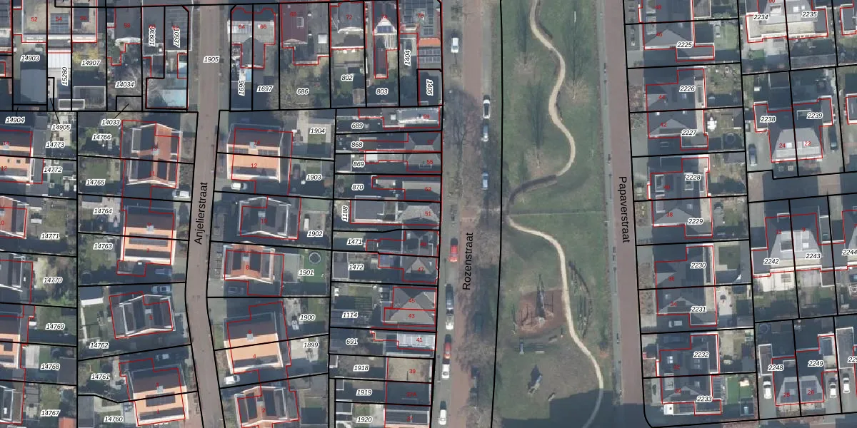 Gebruik de zoekbalk of klik op een perceel voor informatie over de adressen binnen dit perceel.