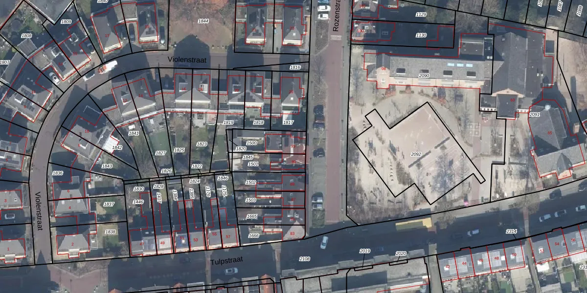 Gebruik de zoekbalk of klik op een perceel voor informatie over de adressen binnen dit perceel.