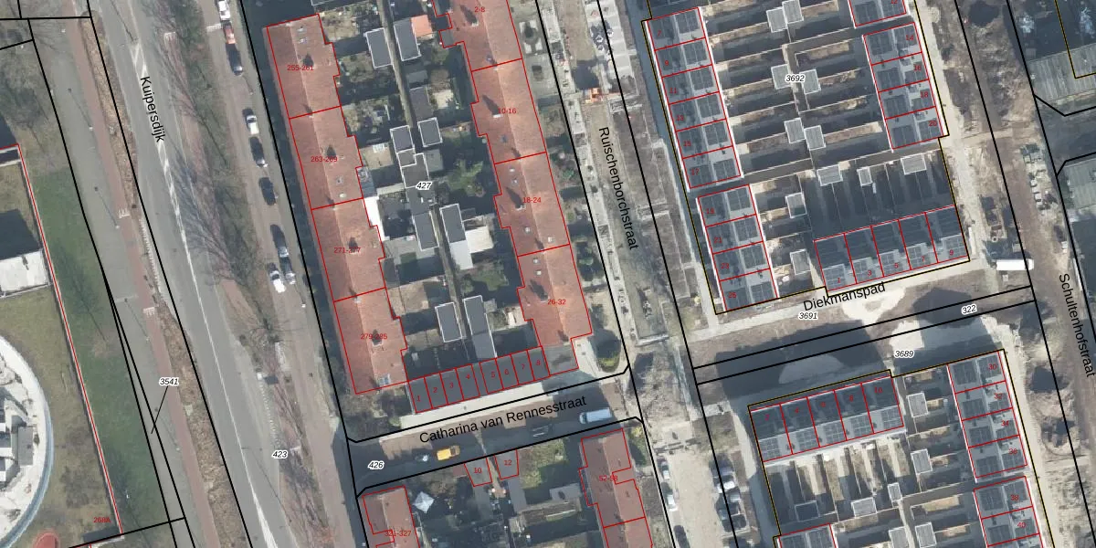 Het perceel waarop Ruischenborchstraat 28 staat heeft een oppervlakte van 4590 m². Dit is een zeer groot perceel. De perceeloppervlakte wordt geregistreerd door het Kadaster. Gedetailleerde informatie over de maten van dit perceel kunt u vinden in het rapport Kadastrale kaart met maatvoering van Ruischenborchstraat 28.