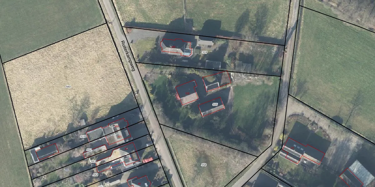 Ruiterkampweg 102 is gelegen op kadastraal perceel LNK00AM555. Deze kadastrale aanduiding is uniek en wordt gebruikt door het Kadaster om eigendomsrechten en andere zakelijke rechten vast te leggen. Het perceel maakt onderdeel uit van de kadastrale gemeente Lonneker.