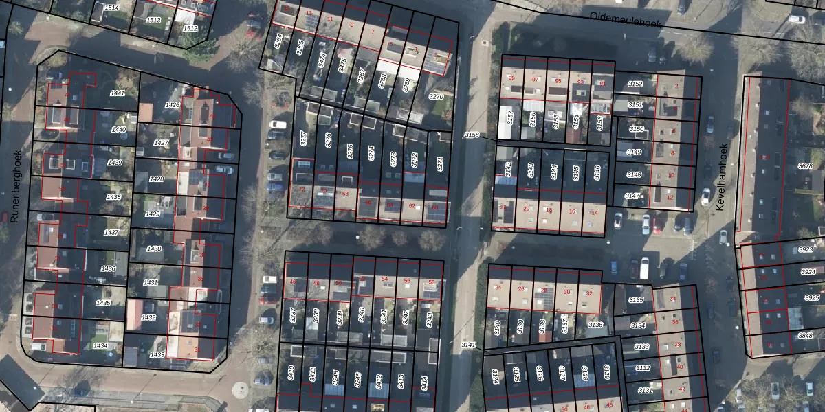 Het perceel waarop Runenberghoek 62 staat heeft een oppervlakte van 130 m². Dit is een middelgroot perceel. De perceeloppervlakte wordt geregistreerd door het Kadaster. Gedetailleerde informatie over de maten van dit perceel kunt u vinden in het rapport Kadastrale kaart met maatvoering van Runenberghoek 62.