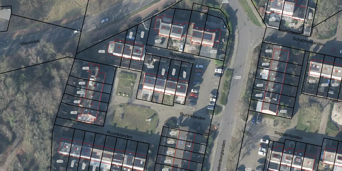 Ruzinklanden 25 is gelegen op kadastraal perceel LNK00G3356. Deze kadastrale aanduiding is uniek en wordt gebruikt door het Kadaster om eigendomsrechten en andere zakelijke rechten vast te leggen. Het perceel maakt onderdeel uit van de kadastrale gemeente Lonneker.